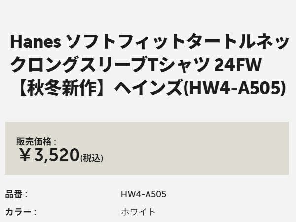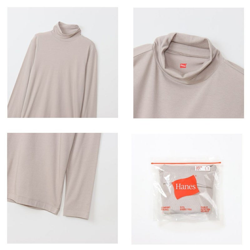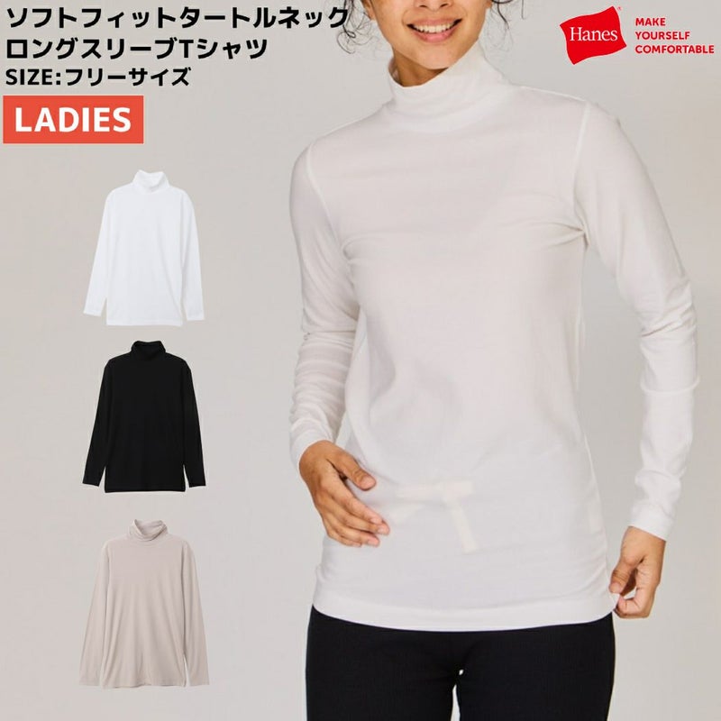 6. ヘインズ Hanes ソフトフィットタートルネックロングスリーブTシャツ レディース 長袖 Tシャツ ホワイト 白 ブラック 黒 ベージュ カジュアル シャツ 長袖 ロンT インナー 重ね着 HW4A505