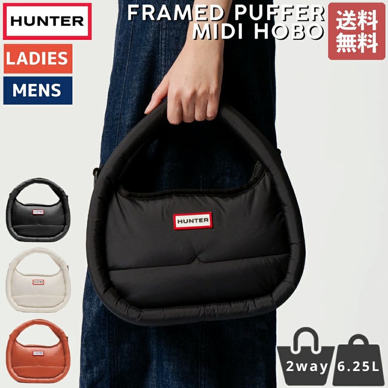 カジュアル バッグ 【正規取扱販売店】ハンター HUNTER FRAMED PUFFER MIDI HOBO フレイムド パファー ミディ ホーボー 6.25L メンズ レディース ユニセックス 2way カジュアル バッグ ハンドバッグ ショルダーバッグ トートバッグ クロスボディ 旅行 ブラック ホワイト オレンジ UBX3712KBM