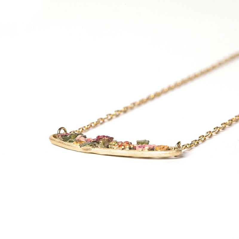 様々な形の花を敷き詰めたネックレスは、