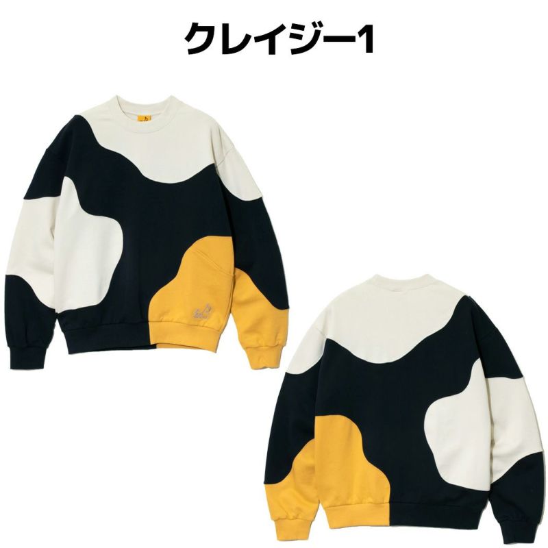 曲線で不規則に切り替えたCRAZYなクルーネックスウェット。