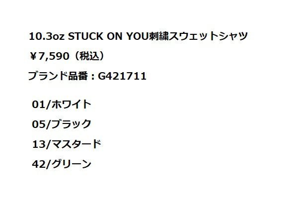 6. ジムマスター gym master 10.3oz STUCK ON YOU刺繍スウェットシャツ 長袖 スウェット トレーナー カジュアル ウェア G421711