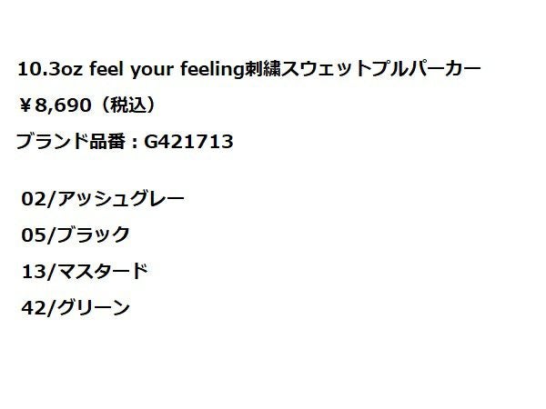 6. ジムマスター gym master 10.3oz feel your feeling 刺繍スウェットプルパーカー フード トレーナー カジュアル ウェア G421713
