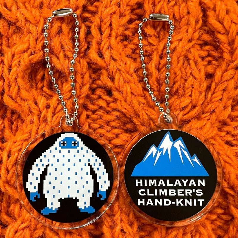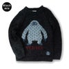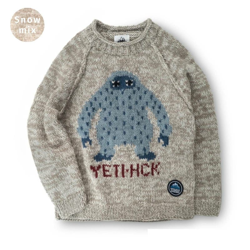 このクル-セ-タ-は前身頃に大きなモチ-フをデザインし、伝統的な手編みの技術を駆使しながらもトレンド感のあるアイテムが出来上がりました。モチ-フにはヒマラヤで目撃された雪男(YETI)を採用しました。