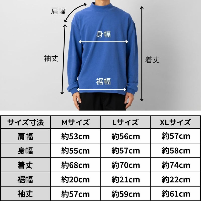 裏毛のスウェット生地を使用したモックネックロングTシャツ。