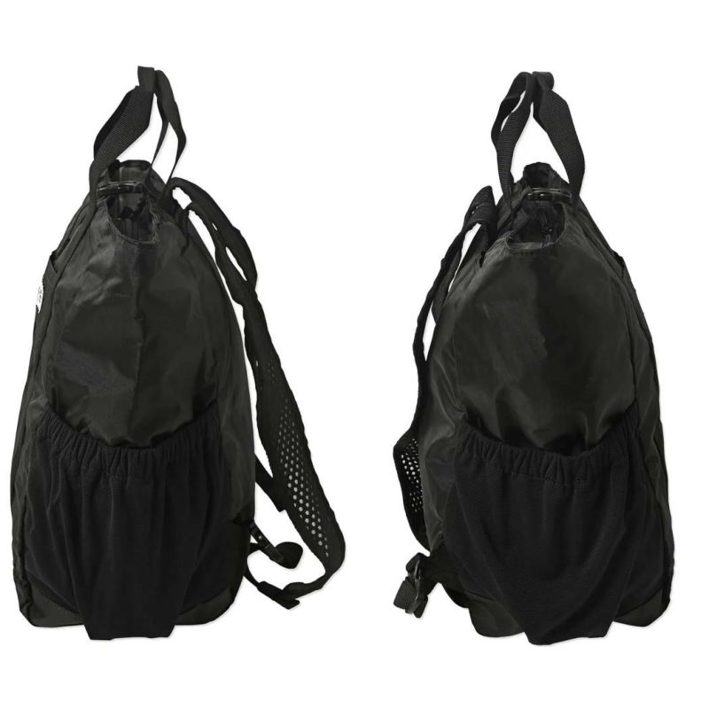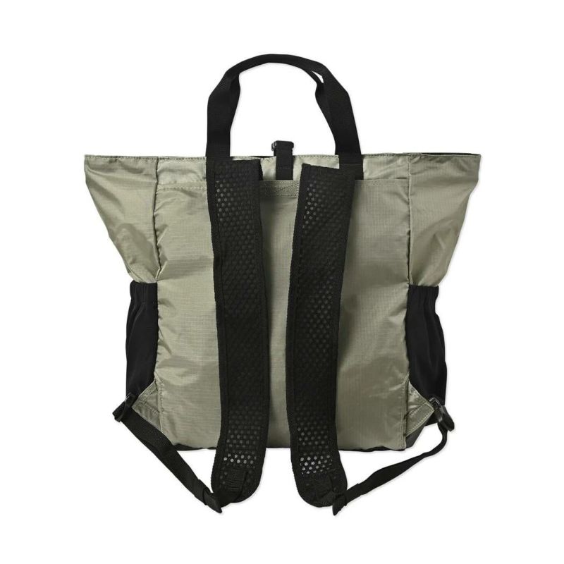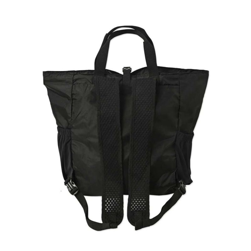 軽量且つ丈夫なナイロンリップストップ生地を採用した、トートバックとしてもバックパックとしても使える2WAYバック。内側ポケットに本体をたたんで収納出来るパッカブル仕様となっており、メインバックとしてもサブバックとしても活躍します。開口部にはファスナー付で、中身の飛び出しを防ぎます。トートバックとして使用する際は、ショルダーハーネスは背面側に収納可能で、すっきり見せることができます。ショルダーハーネスには通気性を持たせる為、メッシュ素材を採用。