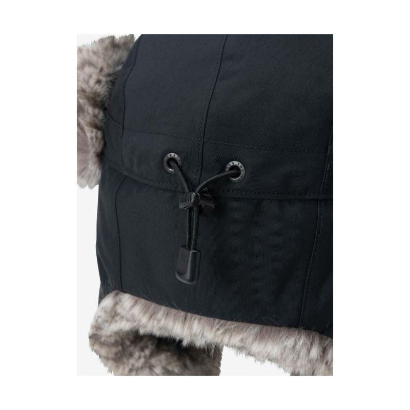 縫い目はシームシーリング加工済み。耳当てはテープバックルで頭部に巻き上げることも可能。