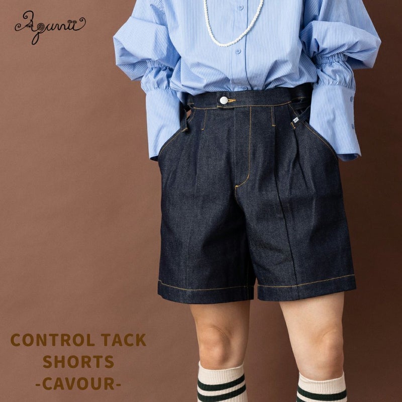 カジュアル パンツ ショーツ アクビ Aquvii CONTROL TACK SHORTS CAVOUR デニム ジーンズ ショートパンツ メンズ レディース ユニセックス 綿 コットン 男女兼用 フリーサイズ サイドアジャスター インディゴ オシャレ aq530