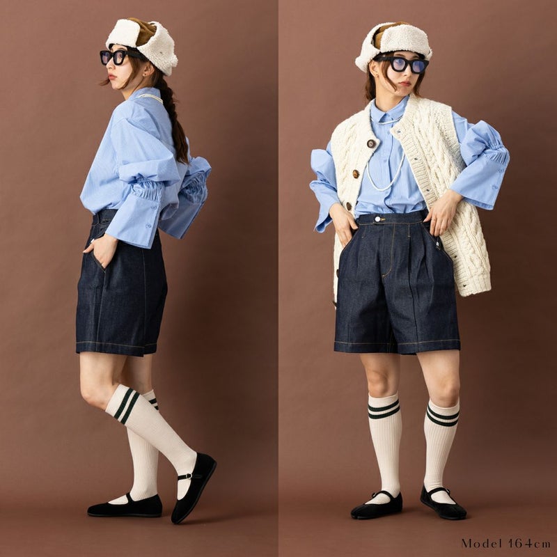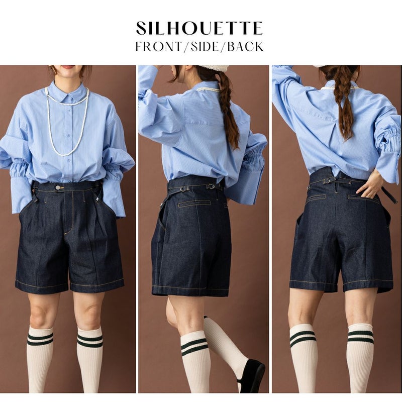 6. アクビ Aquvii CONTROL TACK SHORTS CAVOUR デニム ジーンズ ショートパンツ メンズ レディース ユニセックス 綿 コットン 男女兼用 フリーサイズ サイドアジャスター インディゴ オシャレ aq530