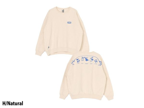 ブービーフレンズが楽しく大縄跳びをしているグラフィックを描いたクルーネックスウェット