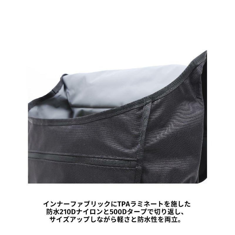 インナーファブリックにTPAラミネートを施した防水210Dナイロンと500Dタープで切り返し、サイズアップしながら軽さと防水性を両立。