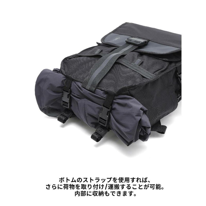 ボトムのストラップを使用すれば、さらに荷物を取り付け/運搬することが可能。 内部に収納もできます。