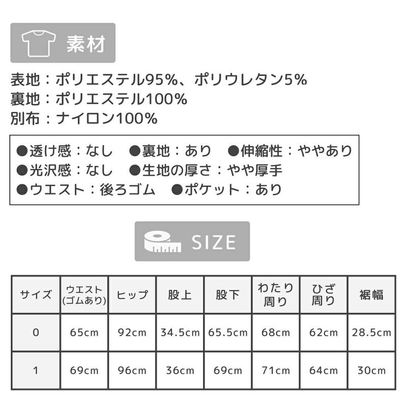 0/ウエスト(ゴムあり):65cm ヒップ:92cm 股上:34.5cm 股下:65.5cm わたり周り:68cm ひざ周り:62cm 裾幅:28.5cm