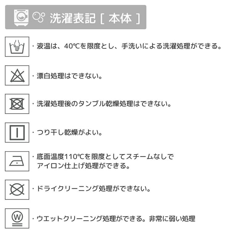 ・液温は、40度を限度とし、手洗いによる洗濯処理ができる。