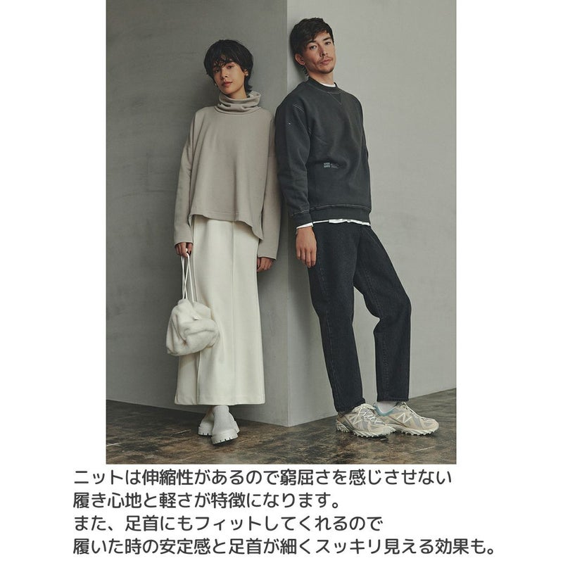 ニットは伸縮性があるので窮屈さを感じさせない履き心地と軽さが特徴になります。