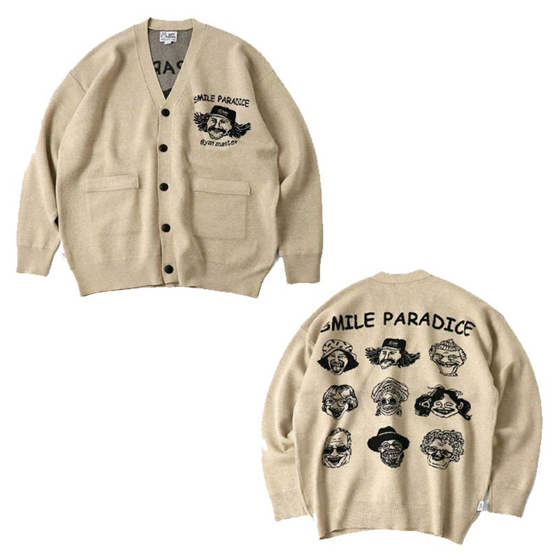 6. ジムマスター gym master ジャガードニットSMILE PARADICE カーデ メンズ カーディガン ニット Vネック トップス カジュアル 春 秋 冬 G421723