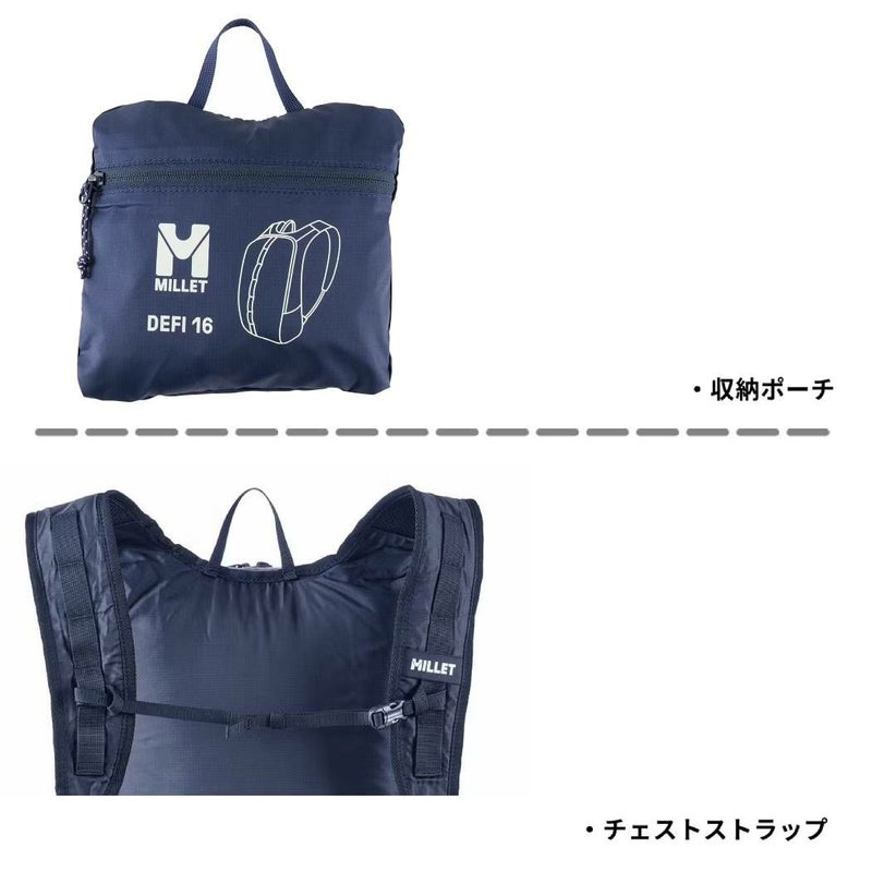 【10%OFF】カジュアル バッグ リュック ミレー MILLET DEFI 16 デフィ 16 メンズ レディース ユニセックス リュック ブラック 黒 ネイビー 紺 カジュアル 旅行 トラベル バッグ サブバッグ パッカブル 軽量 エコバッグ MIS0790