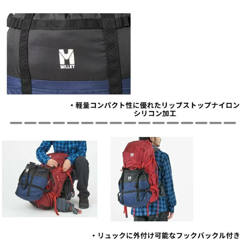 山行後の着替えやシューズの収納から、旅行でのサブバッグなど多彩なシーンで便利に使えるパッカブルなトートバッグ。軽量かつ耐久性に優れたリップストップナイロン生地を採用し、開口部をドローコードで締めることができます。さらにフックバックルを利用してリュックサックに外付けすることが可能。冬靴1足まで対応しアウトドアや旅行での荷物が増えたときなどにも活躍します。