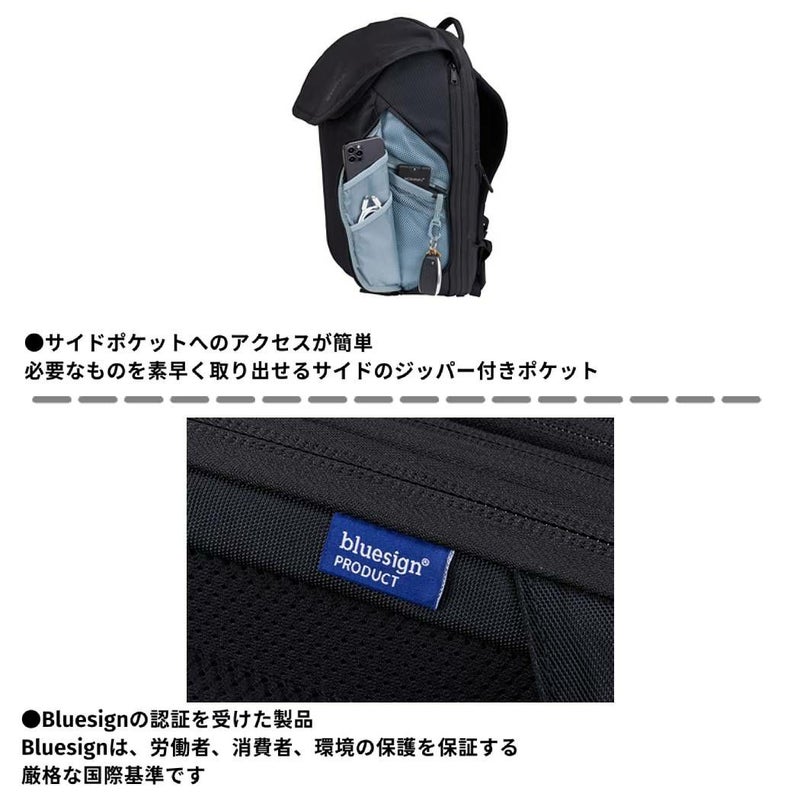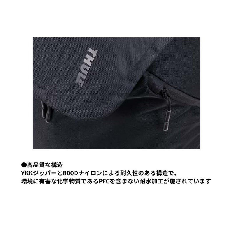 YKKジッパーと800Dナイロンによる耐久性のある構造で、環境に有害な化学物質であるPFCを含まない耐水加工が施されています