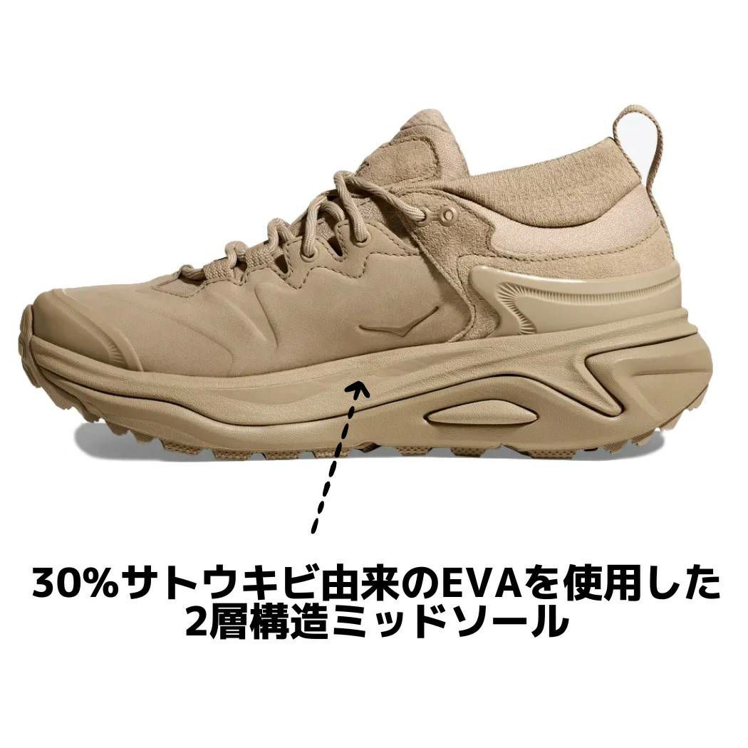 日帰りハイキングから数日間のアドベンチャーまで対応し、クッション性に優れたソックライナーが足の疲労を和らげる一方、サトウキビ由来の2層構造EVAミッドソールは前モデルよりも反発力が増しました。