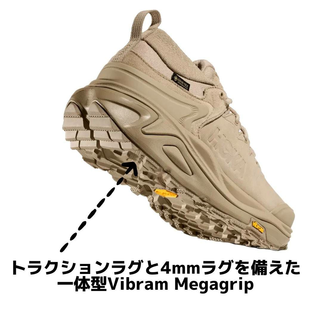 GORE-TEX Invisible Fit採用を採用し、優れた快適性を実現したカハ3 ローGTX(KAHA 3 LOW GTX)は、耐久性に優れたトウキャップ、砂利の侵入を緩和するアキレス腱に沿ったヒールカラー、そして緩んだ路面もしっかり捉えるVibram Megagripアウトソールを備えています。
