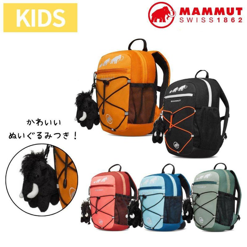 容量によって,2~9歳のキッズ用に細分化された小さなデイパック。 マムートのぬいぐるみ付き。