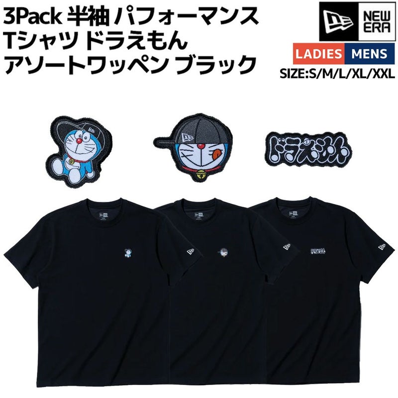3. ニューエラ NEW ERA 3P TECH TEE DORAEMON WAPPEN BLK 3Pack 半袖 パフォーマンス Tシャツ ドラえもん アソートワッペン ブラック 男女兼用 Tシャツ 半袖シャツ アニメ 漫画 カジュアル アウトドア 14520739