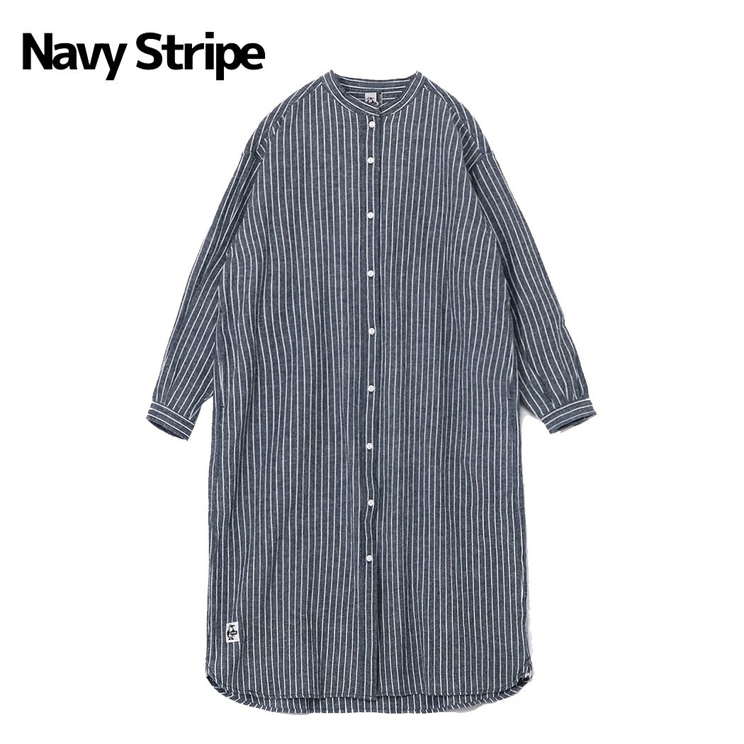 5. チャムス CHUMS ハリケーンロングワンピース シャツワンピース ワンピース レディース カジュアル アウトドア キャンプ 長袖 羽織 スタンドカラー CH18-1344 アウトレット セール