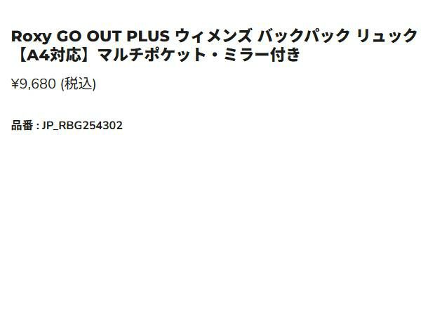 Roxy GO OUT PLUS ウィメンズ バックパック リュック【A4対応】