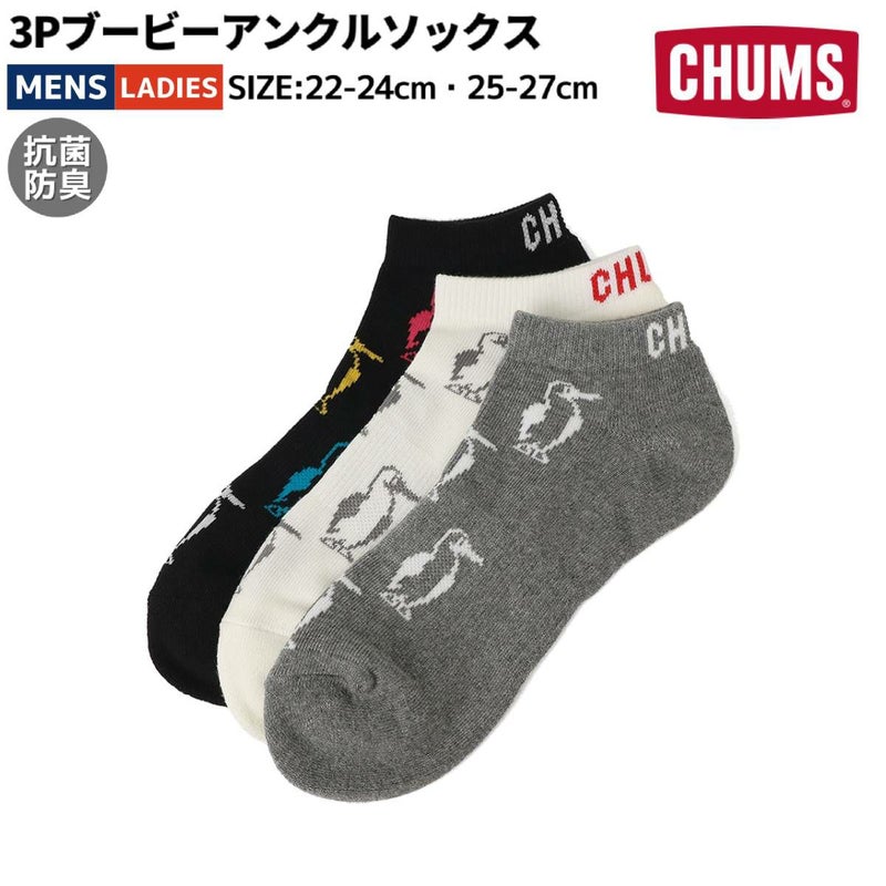 6. チャムス CHUMS 3Pブービーアンクルソックス メンズ レディース ユニセックス 3足セット カジュアル アウトドア ソックス 靴下 抗菌 防臭 くるぶし丈 CH06-1127