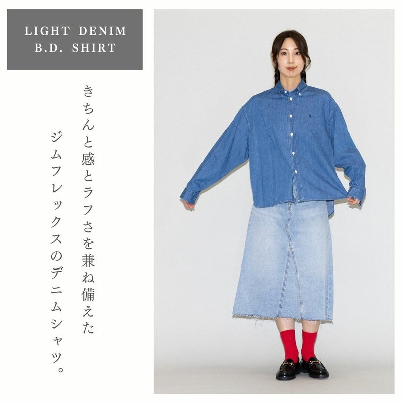 ジムフレックス(Gymphlex)より、軽やかな着心地が魅力の 6ozライトデニム ボタンダウンシャツ のご紹介です。