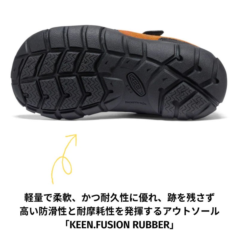踏み跡を残さず、高度な防滑性と耐摩耗性を発揮する《KEEN.FUSION RUBBER》