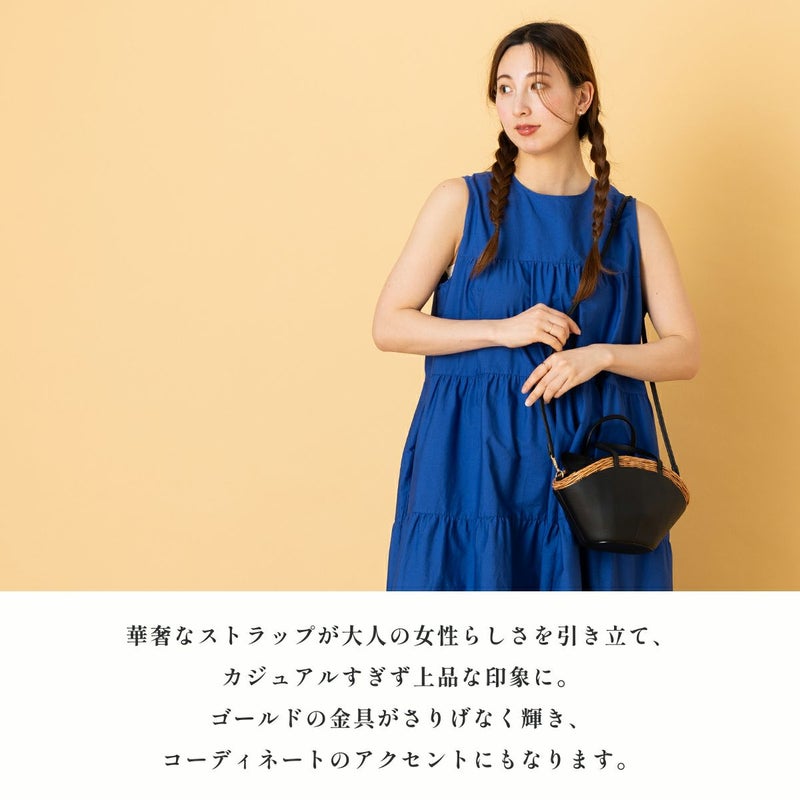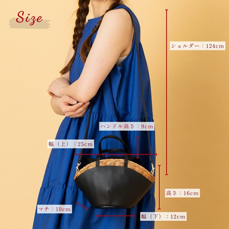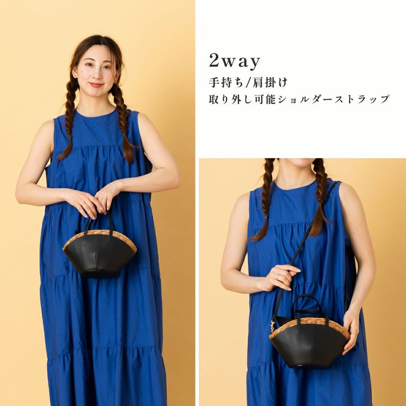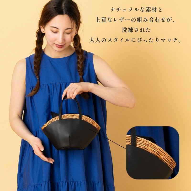 ウィッカー編みラタンとカウレザーの美しいコンビネーションが魅力の2WAYカゴバッグ。
