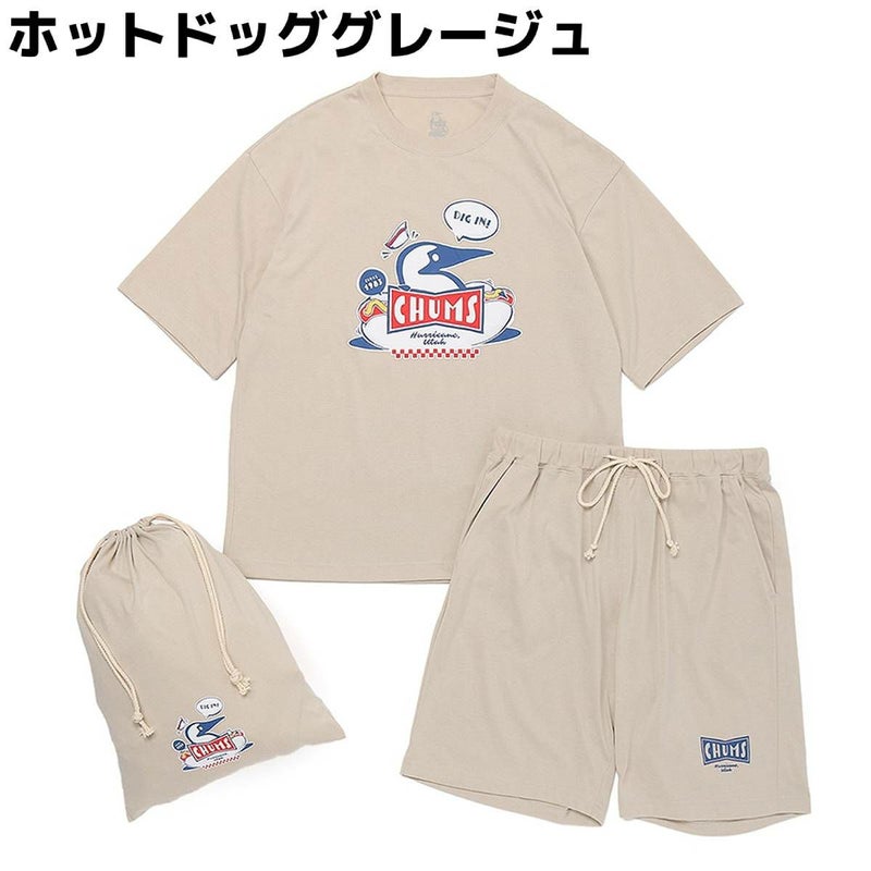 【32%OFF】 チャムス CHUMS HOME Chillax Wear Set チャムスホーム チラックス ウェアセット ユニセックス ベージュ ネイビー カジュアル 半袖 シャツ ショートパンツ 上下セット ルームウェア パジャマ CH01-2551 アウトレット セール