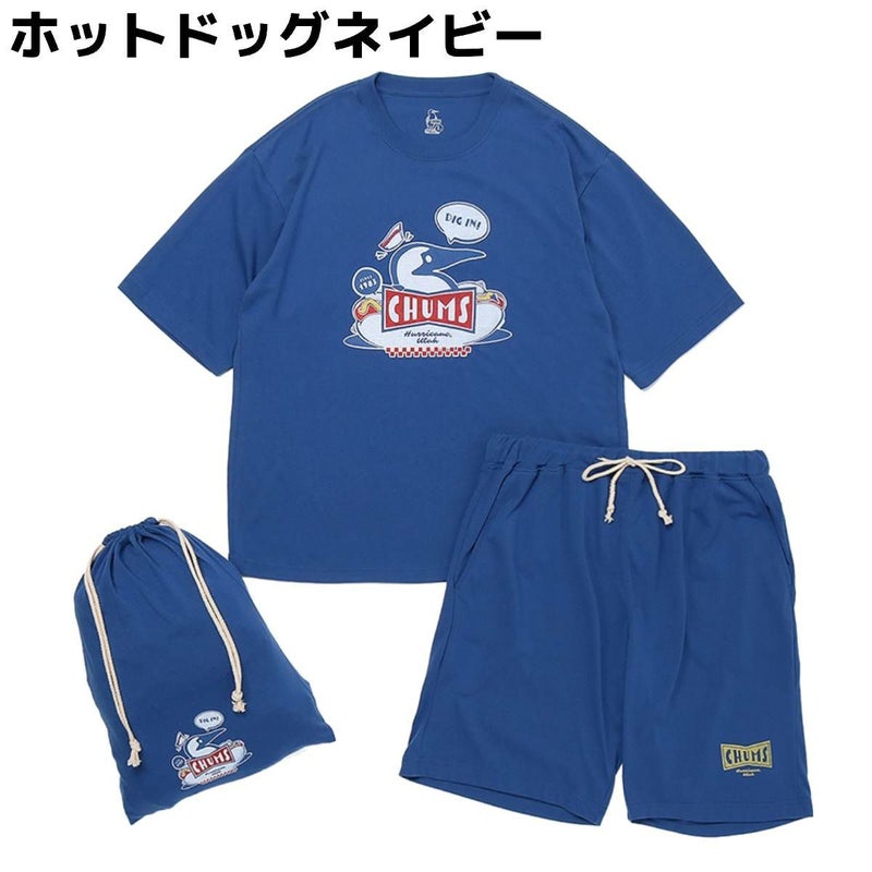 7. チャムス CHUMS HOME Chillax Wear Set チャムスホーム チラックス ウェアセット ユニセックス ベージュ ネイビー カジュアル 半袖 シャツ ショートパンツ 上下セット ルームウェア パジャマ CH01-2551 アウトレット セール