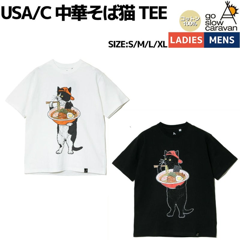 7. ゴースローキャラバン go slow caravan USA/C 中華そば猫 TEE 猫Tシャツ ラーメン柄 柄Tシャツ メンズ レディース ユニセックス 男女兼用 春 夏 カジュアル アウトドア トップス 半袖 Tシャツ クルーネック プルオーバー 341914