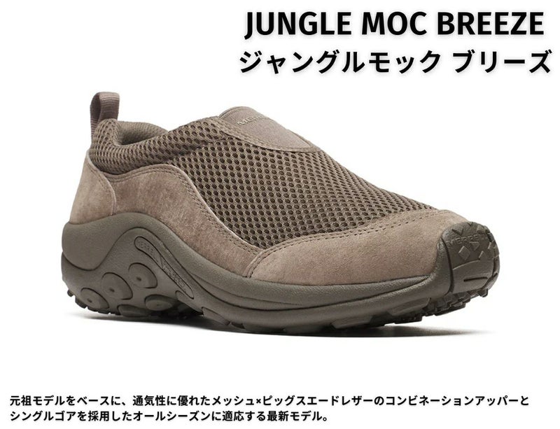 『JUNGLE MOC BREEZE (ジャングルモック ブリーズ)』は、元祖モデルをベースに、通気性に優れたメッシュ×ピッグスエードレザーのコンビネーションアッパーとシングルゴアを採用したオールシーズンに適応する最新モデル。