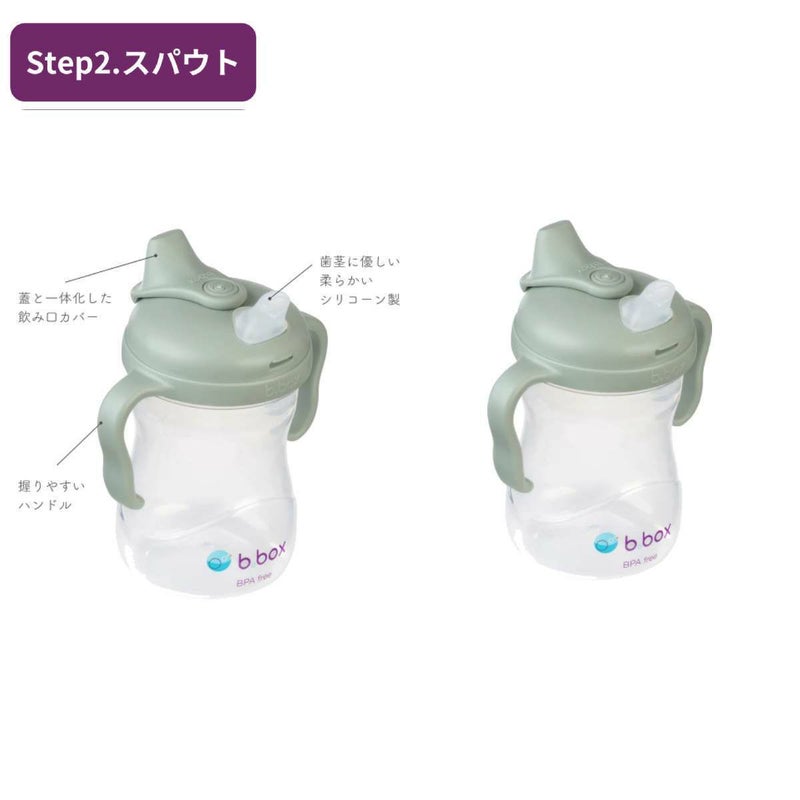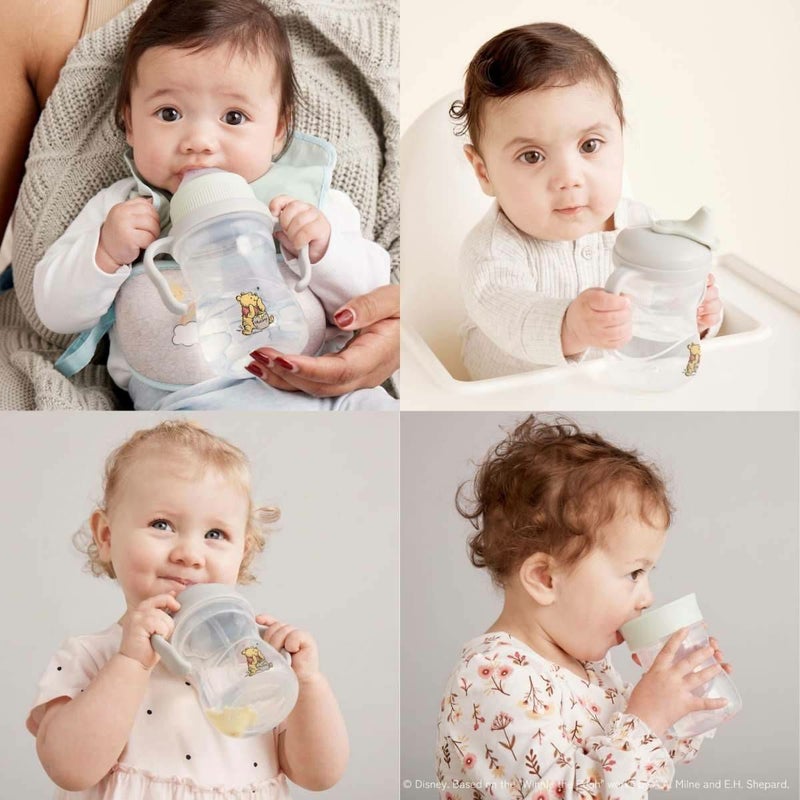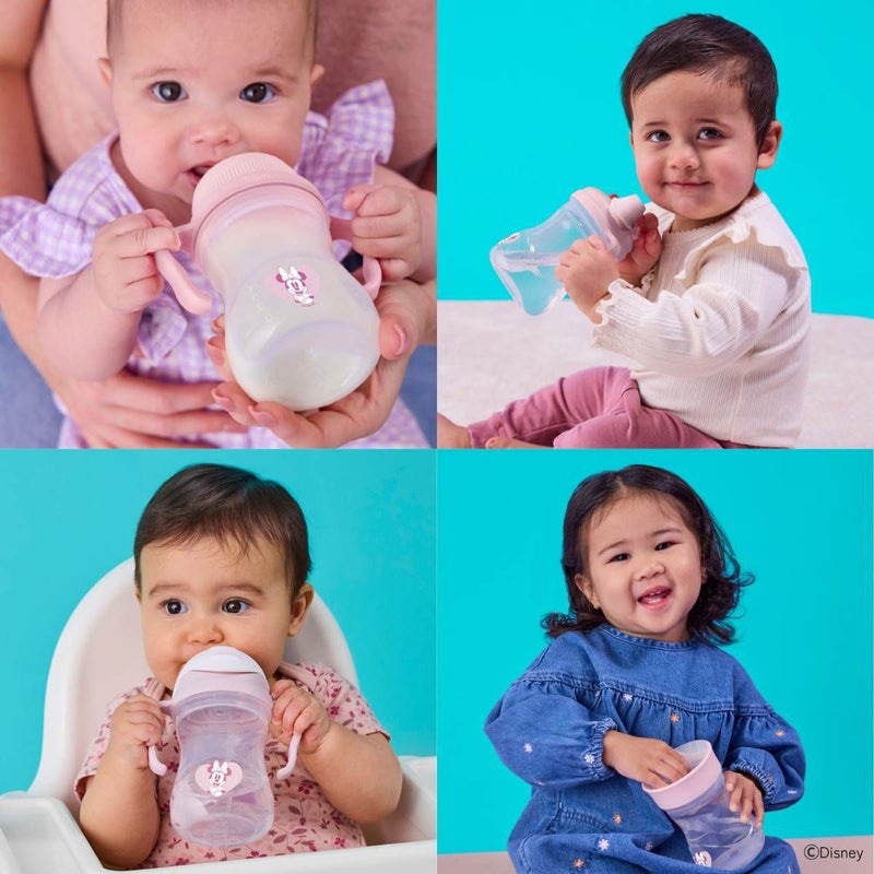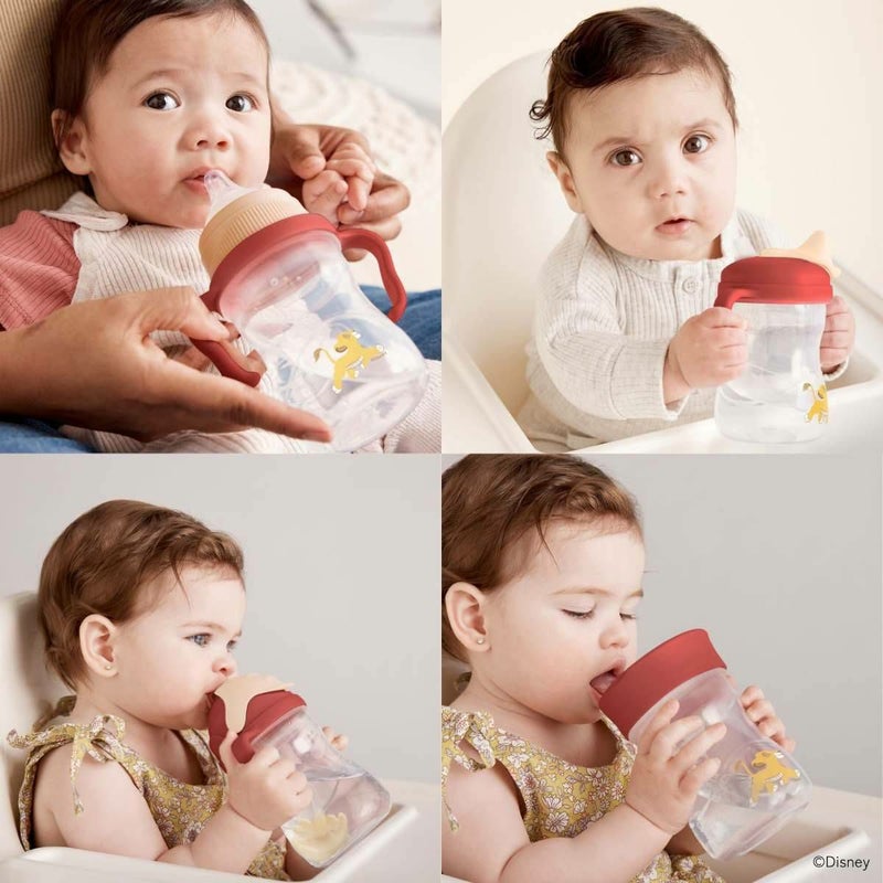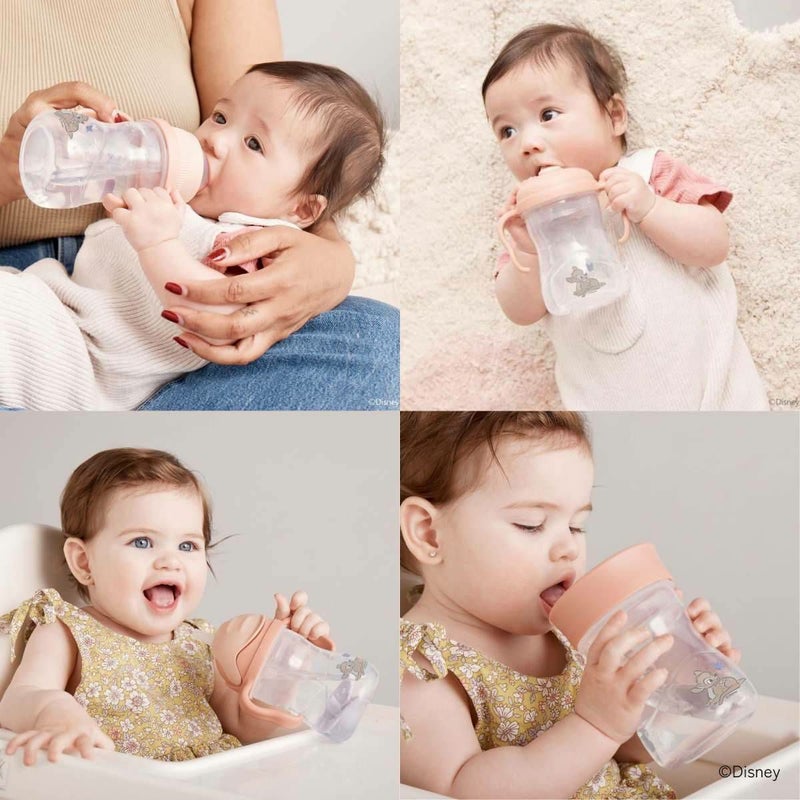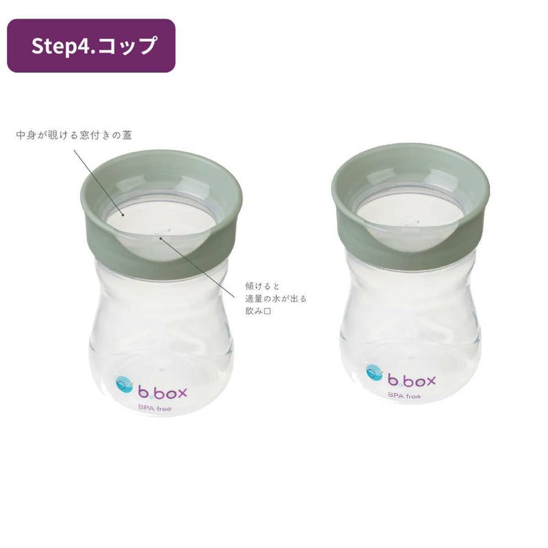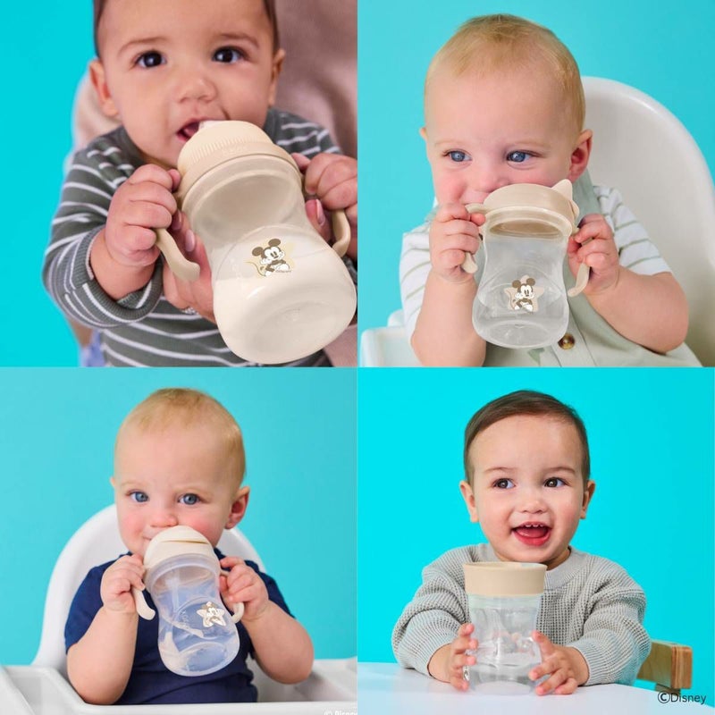 1カップに4種類の飲み口がついています。赤ちゃんの成長に合わせて蓋を交換するだけで、3ヶ月から12ヶ月以上の赤ちゃんのドリンクトレーニングに対応できます。(ボトルは1つのみの付属となっております。)