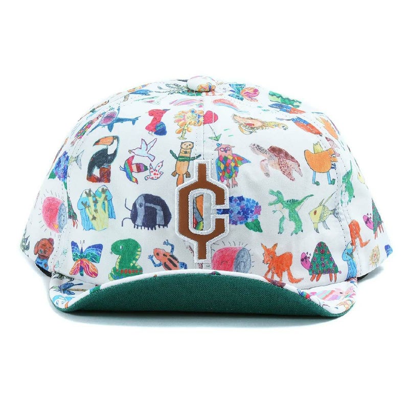 子どもたちの柔らかな優しい、元気いっぱいのタッチで描かれた自由なイラストがとっても楽しい総柄の帽子が完成しました!