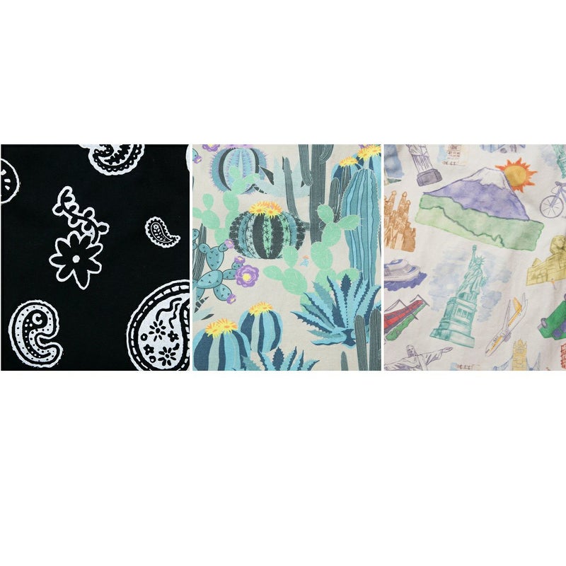 腰のあるライトキャンバス生地にオリジナル柄の総柄プリント。