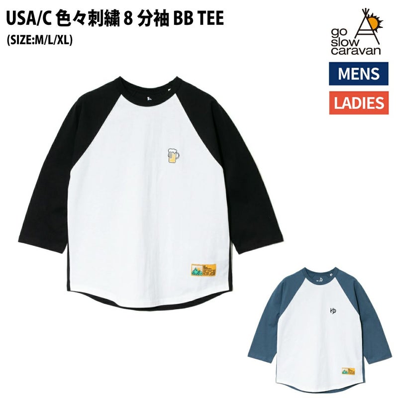 【40%OFF】 ゴースローキャラバン go slow caravan USA/C 色々刺繍 8分袖 BB TEE Tシャツ カジュアル シャツ 341906 012 062 アウトレット セール