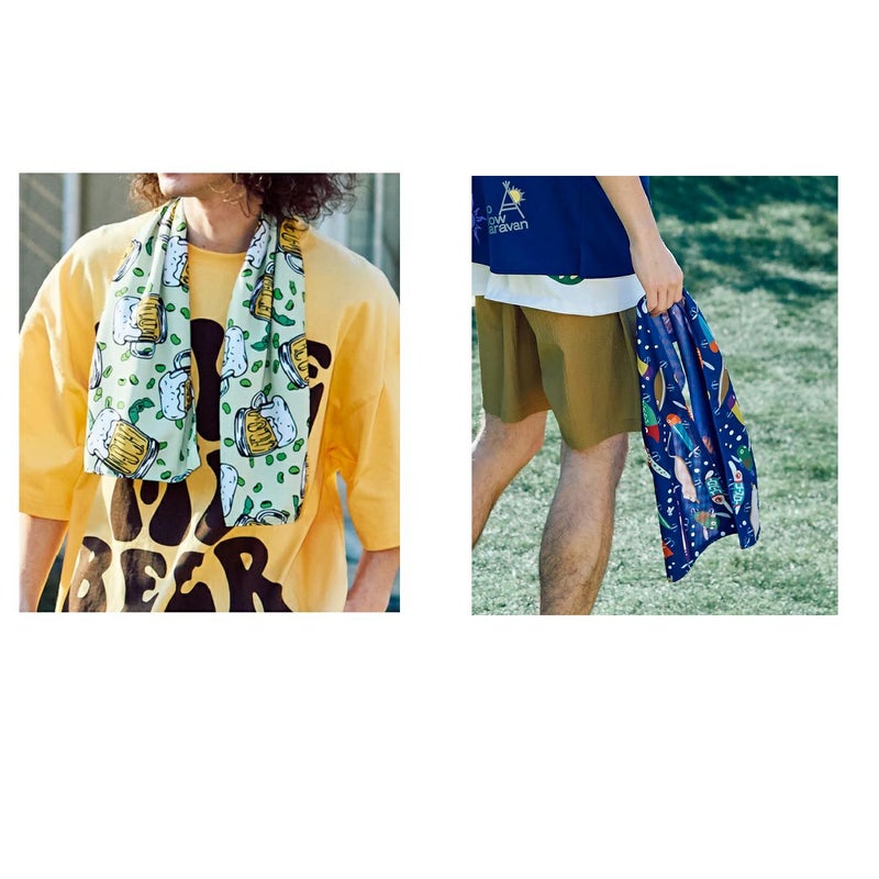 ◎首にかけたり、頭に巻いたりできるマフラータオルサイズ。