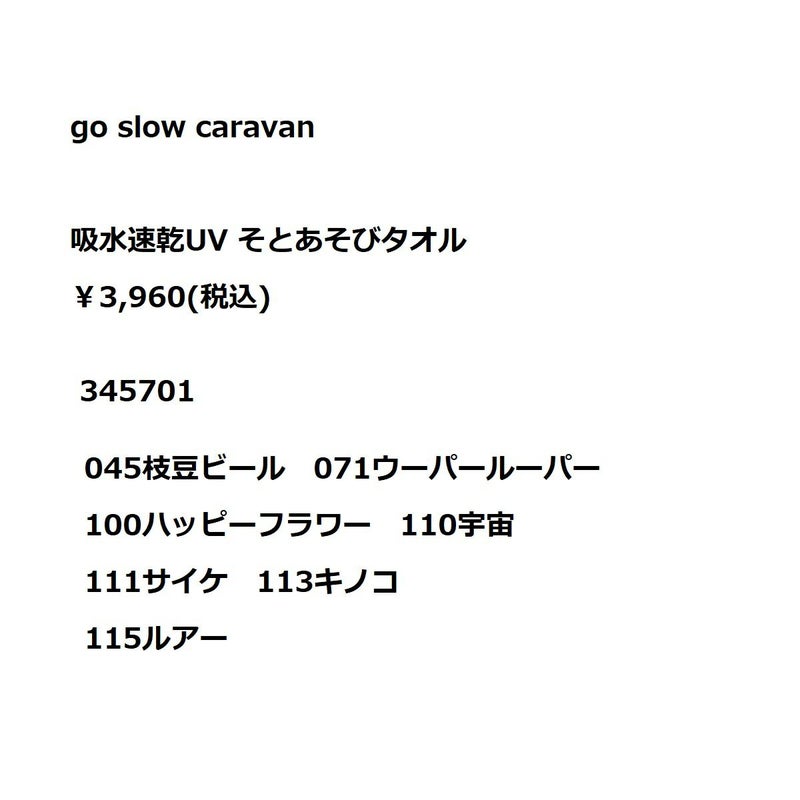 【35%OFF】小物 アクセサリー ゴースローキャラバン go slow caravan 吸水速乾UV そとあそびタオル 小物 アクセサリー 345701