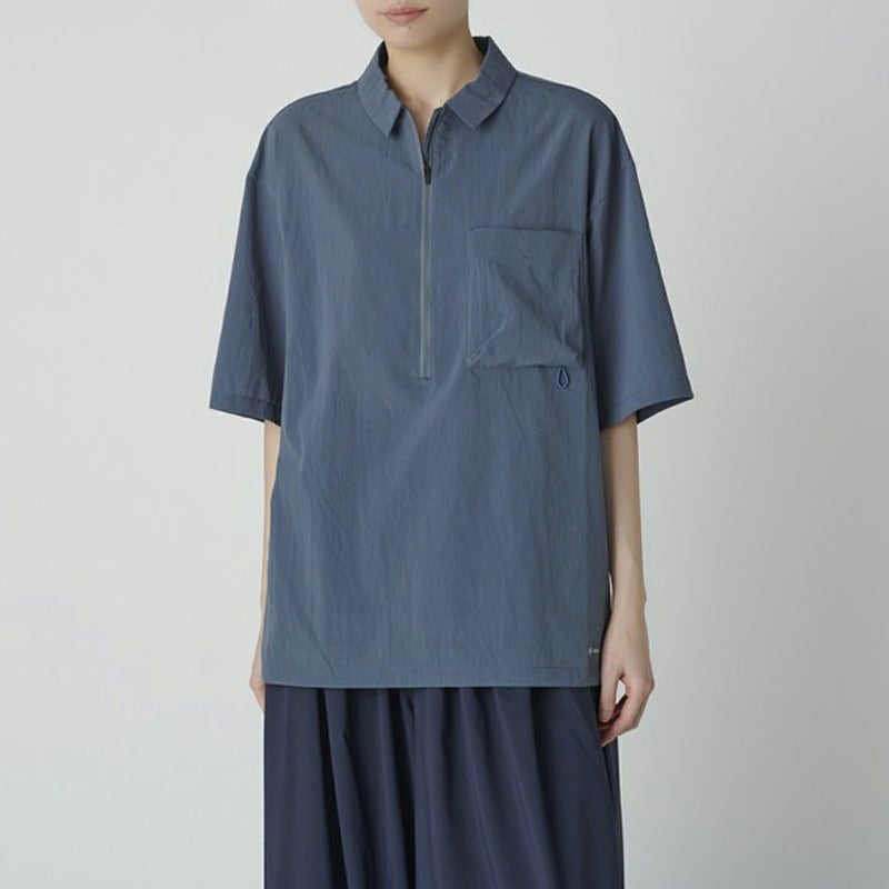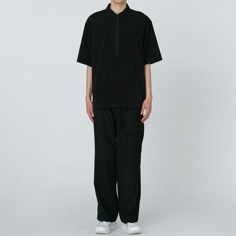 ファスナー開閉ネックで、着脱がしやすいハーフジップの半袖ポロシャツ。