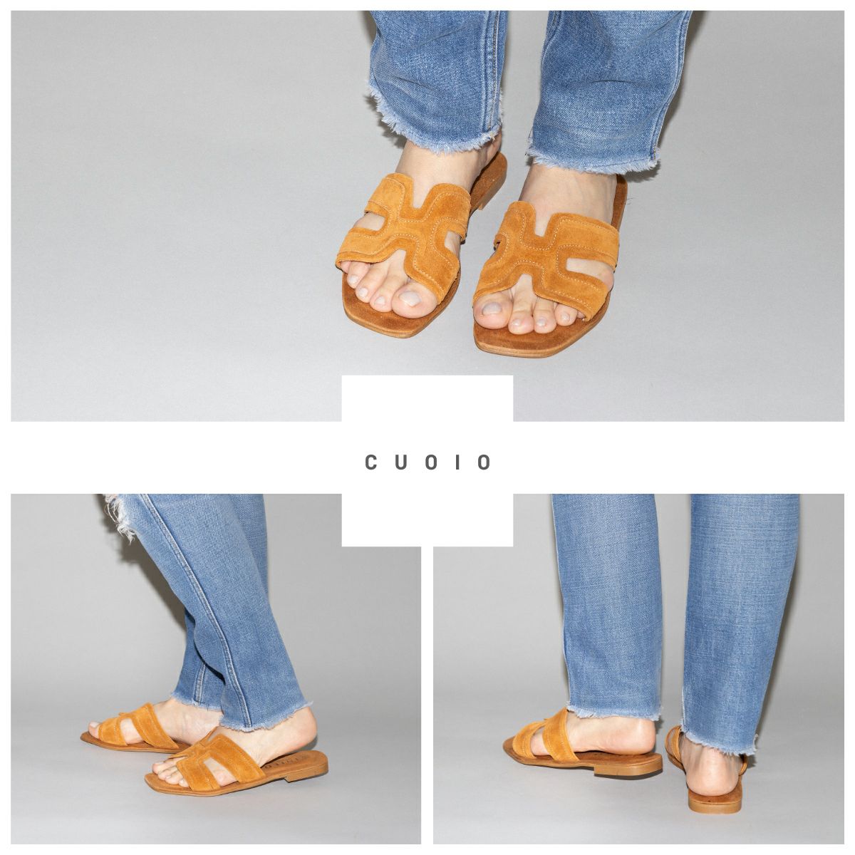 シンプルなデザインながら、程よく肌を見せる抜け感が、大人の足元にこなれた表情をプラス。