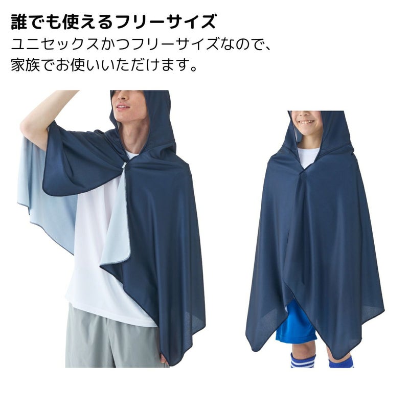 気化熱を利用した、暑い夏の屋外に最適な冷感ポンチョ。