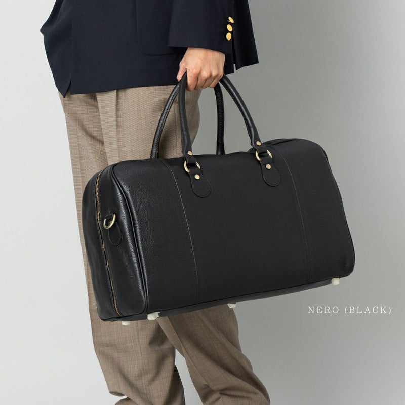 洗練された佇まいと、抜群の機能性を兼ね備えたAULENTTIの本革ボストンバッグ。
