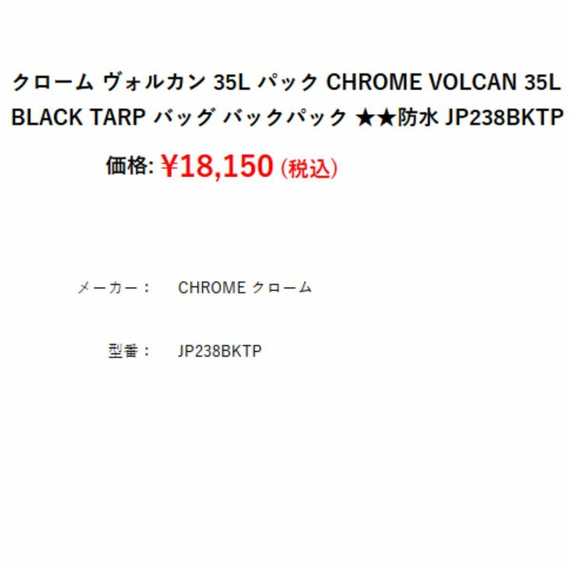 【12%OFF】カジュアル バッグ リュック クローム CHROME ヴォルカン VOLCAN 35L バックパック 防水 メンズ レディース ユニセックス