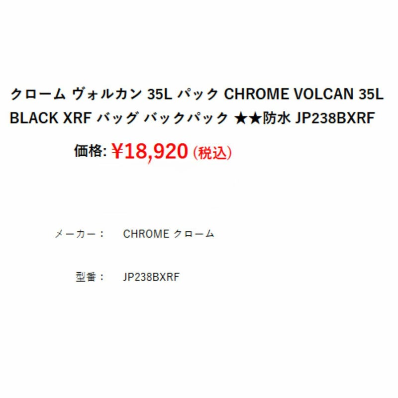 【12%OFF】カジュアル バッグ リュック クローム CHROME ヴォルカン VOLCAN 35L バックパック 防水 メンズ レディース ユニセックス