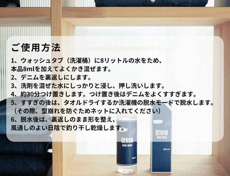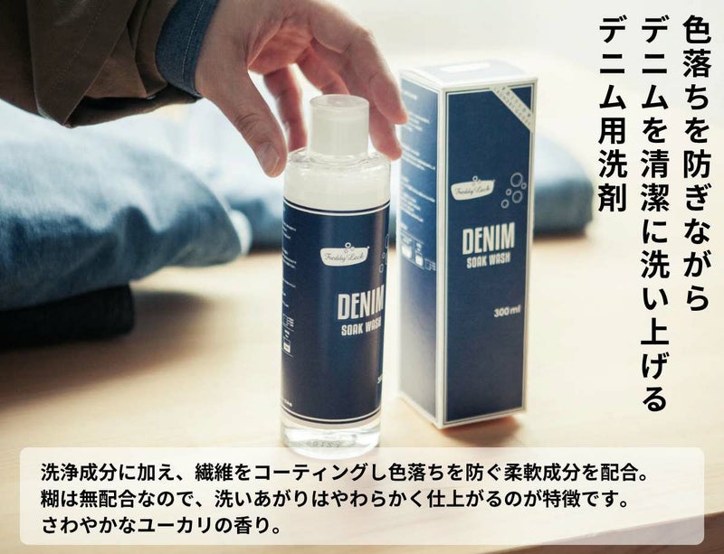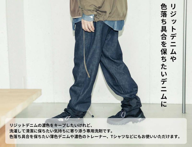 リジットデニムの濃色をキープしたいけれど、洗濯して清潔に保ちたい気持ちに寄り添う専用洗剤です。