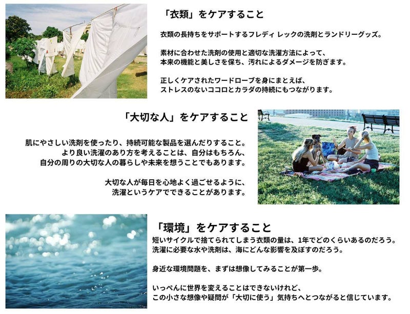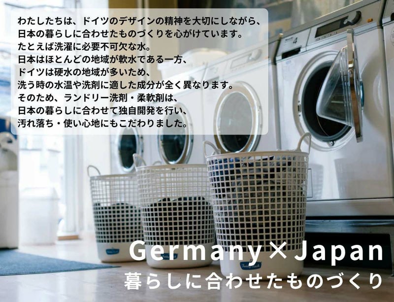 ・洗浄成分に加え、繊維をコーティングし色落ちを防ぐ柔軟成分を配合。糊は無配合なので、洗いあがりはやわらかく仕上がるのが特徴です。